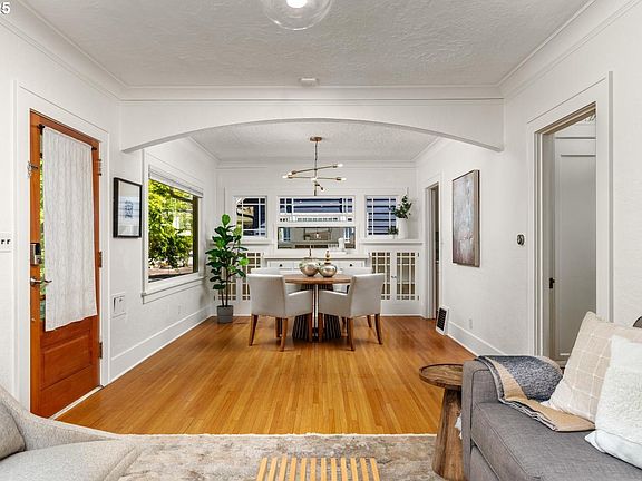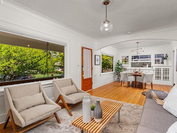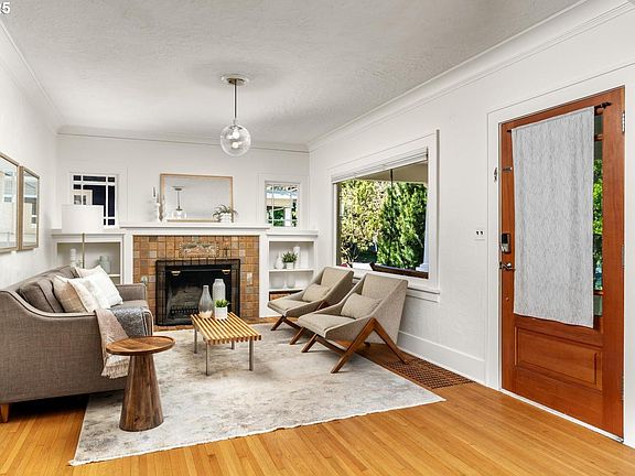 Beautifully renovated while preserving vintage character in desirable Woodlawn. Living and dining rooms feature original built-ins, hardwood floors, original Batchelder tile fireplace and large picture windows providing abundant natural light. Remodeled kitchen has quartz and butcher block counters, subway tile backsplash, eating nook with built-in seating and Bosch gas range and dishwasher. Main floor bath has updated subway tile in tub/shower and hex tile floor. Generously sized bedrooms with great light and wood floors. Primary bedroom boasts three closets, including one walk-in. Downstairs family room has Luxury Vinyl Plank floors, built-in wet bar, bookshelves and outside entrance for potential ADU. Additional finished space is perfect for a bedroom and/or office. Great outdoor spaces include covered front porch, covered patio under a gazebo, large, level turf area and custom skate ramp! Huge (200+ SF) garden shed with clerestory windows provides great storage for gear and garden supplies. Wired for EV charger. Low property taxes! Easy walk to Dekum triangle featuring Woodlawn Coffee & Pastry, Breakside Brewery, Firehouse Restaurant, Good Neighbor Pizzeria and the Woodlawn Farmer’s Market. [Home Energy Score = 2. HES Report at https://rpt.greenbuildingregistry.com/hes/OR10201835]