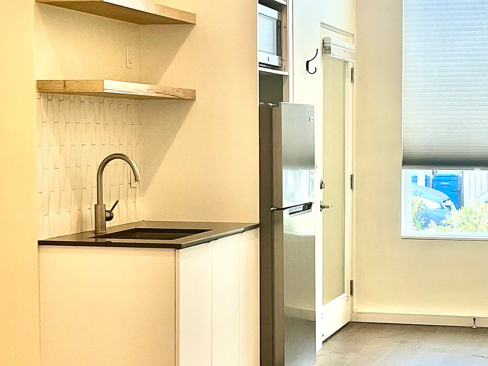 Newly built modern apartment features a space for you to relax and enjoy with all the conveniences of the city but with a neighborhood feel.