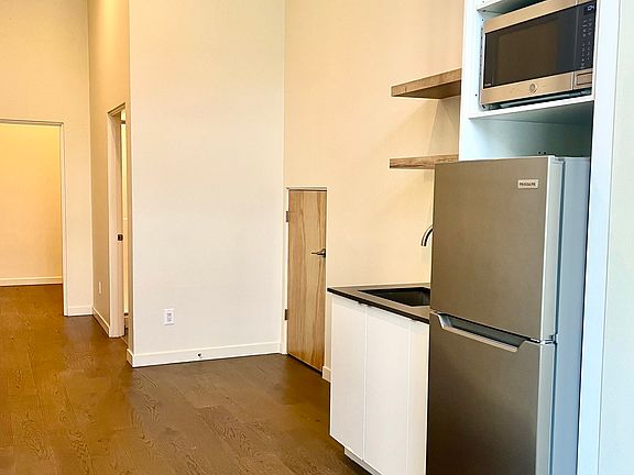 This well lit unit has high ceilings and great natural light in the living area. Features include electronic building entry, hardwood floors, stone countertops, stainless steel appliances including a washer / dryer, mini-split heat and AC. All windows have top down bottom up shades.