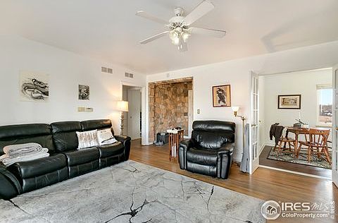 Mid-century modern style home near City Park, campus, and schools. The home features hardwood floors, nice stone work both inside and out, a covered patio, nice backyard backing to an open field, attached garage, large bedrooms.