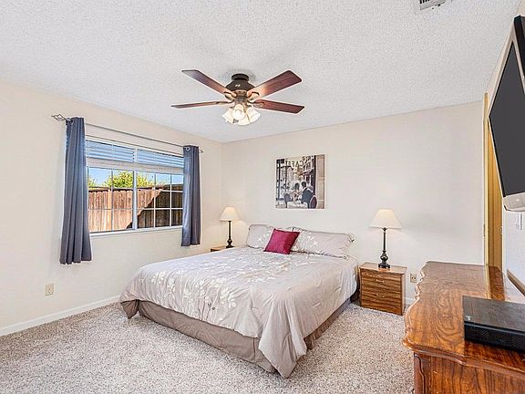 Curb appeal, no rear neighbors, owned solar and a view! This 3 bedroom 2 bath 1,224 sq ft has so much to offer. Freshly painted exterior and well landscaped front yard will invite you in. Once you walk through the door you will enter your family room, complete with vaulted ceilings, brick fireplace and a large window providing plenty of natural light. The Family room opens up to the large Dining room, giving you an open spacious feel. This kitchen has tile flooring, updated cabinets, stainless steel appliances and a skylight. When you walk down the hallway you will immediately notice the new carpet that continues into all the bedrooms. Both bathrooms have new luxury vinyl plank flooring and updated vanities. The master bedroom is spacious with a walk-in closet and a nook area that is perfect for your favorite chair to cozy up on, or can be used as a home office.