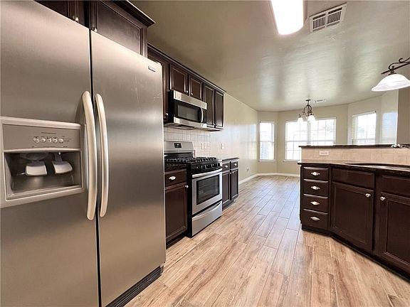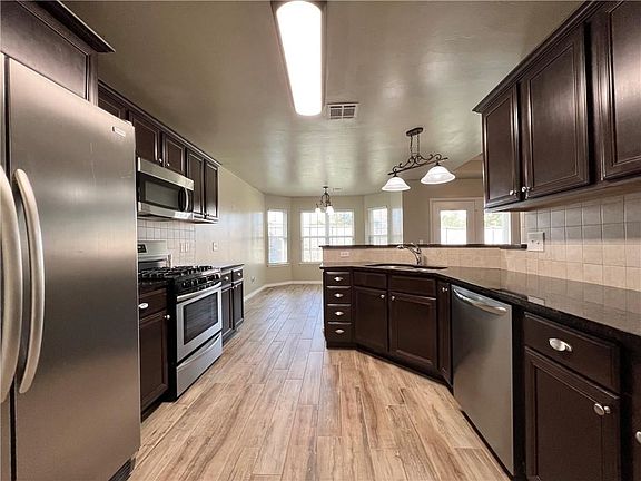 Three bedroom, 2-bath, brick home with a 2-car attached garage in the Timbers addition ready for new homeowners! Home offers fresh paint throughout, beautiful wood-look tile, newer carpet, granite countertops, gas fireplace, upgraded appliances, jetted tub with separate shower and walk-in closet with built-ins in the master suite. Guest bedrooms each have walk-in closets. Easy access to colleges, highways, shopping, dining and medical facilities. This home will not last long!