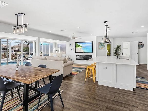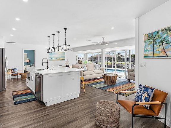 Fully remodeled Southern exposure Direct Gulf Access (no bridges/locks) Pool Home being sold TURNKEY *everything stays with the home - just bring your own toothbrush! This home is located on the Balfour Canal in SE Cape. This beautifully updated home boasts 4 beds, 2 baths, oversized 2 car garage with a large electric heated pool w/ spa. Recent updates include: New cabinets, SS appliances, all new flooring, interior paint, brand new Aqualink system for pool/spa (allows you to set pool & spa temp, pumps, & lights from anywhere with an app on your phone), newer roof, doors/hardware, electrical panel, AC, Exterior Paint, and resurfaced pool. City water and sewer with ALL ASSESSMENTS PAID IN FULL. Conveniently located in SE Cape Coral, just minutes from downtown Cape Coral, Fort Myers, Sanibel/Captiva, and everything SW Florida has to offer. Keep your boat on the 10k lift and enjoy a short boat ride to the river and out to the Gulf of Mexico. This property is a succesful vacation rental, but could be a full-time home or part-time home! Don't miss out on the opportunity to own your slice of paradise here in SWFL.