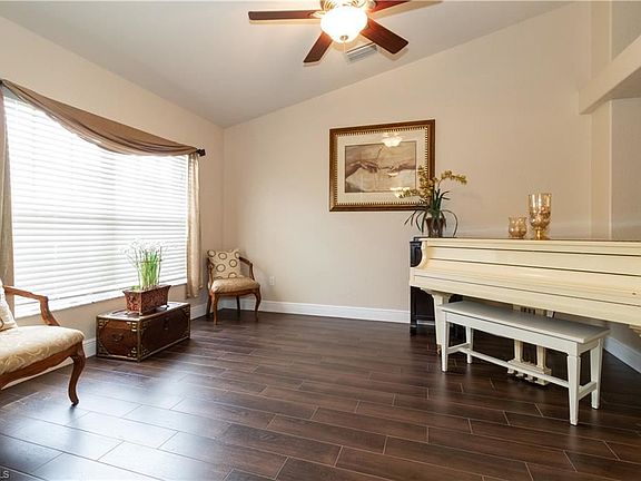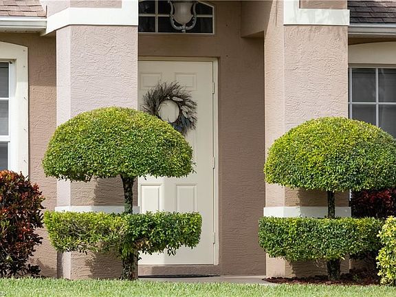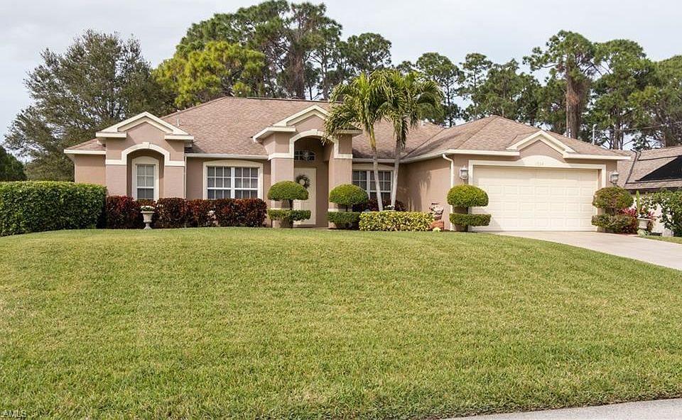 LOCATION, LOCATION, LOCATION. Inviting Mercedes built single-family ranch SW Cape Coral home is adjacent to Palmetto-Pine (Golf) Country Club and central to shopping, schools with easy access to Veterans Parkway. The home boasts an open floor plan design, neutral colors, vaulted ceilings, 2279 living square feet with 4 bedrooms, 2 full baths and plenty of garage space and parking. The kitchen has updated stainless steel appliances, wood cabinetry, a breakfast bar, and informal and formal dining areas. New ceramic tile plank flooring throughout the home. Bedrooms have recently been repainted. Split Master bedroom en-suite with sitting area overlooking the backyard. Newer Samsung washer/dryer. Spacious enclosed lanai and backyard for fire pit chats, family gatherings, and a pool if you want one. And yes, NO SPECIAL ASSESSMENT taxes. Centralized sewer and water with no flood insurance necessary. Original owners built home in 2003 and have lovingly cared for it since. Desirable, friendly neighborhood in a growing community. Perfect for expanding families, multi-generational families or anyone who needs more space. Make an appointment to see this home now- you won't be disappointed.