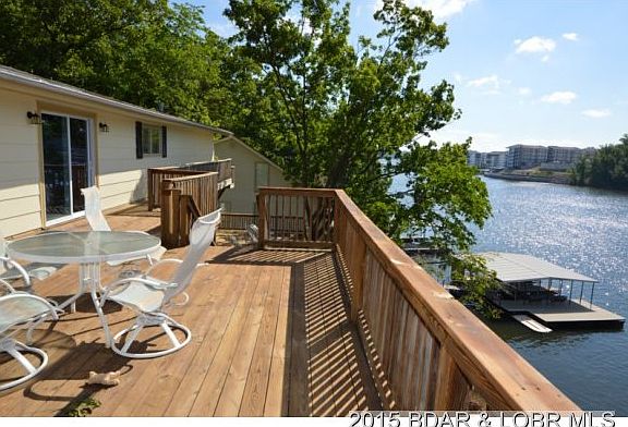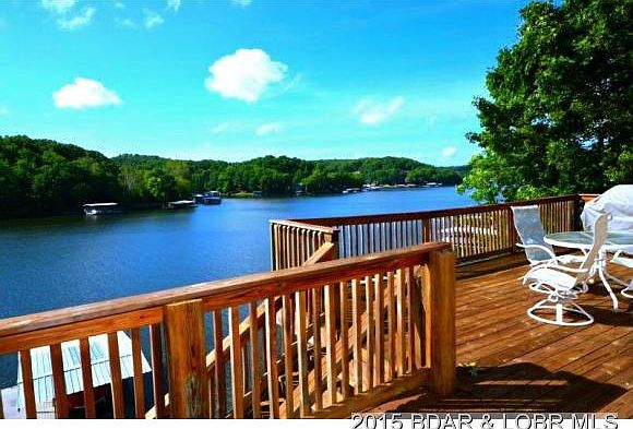 This is the lake front DEAL you have been looking for! 4 Bedrooms, Dock and tons of entertainment areas for your family. And the VIEW is amazing!Located just off Horseshoe Bend Parkway in Lake Ozark by land and nestled in deep water cove protection of the 2MM by water. Enjoy this recently remodeled lake front home with new roof, carpet, paint inside and out and more. Home has vaulted ceilings, wood burning fireplace, lots of storage,and attached two car garage. Spacious home with an incredible view, lots of decks to enjoy it, plus you have cove protection and deep water!! The dock and the hoist are included. By the way it also faces East for afternoon shade. Yes, the whole package!