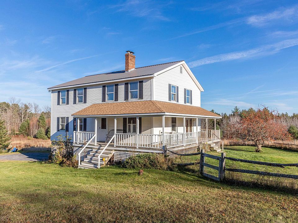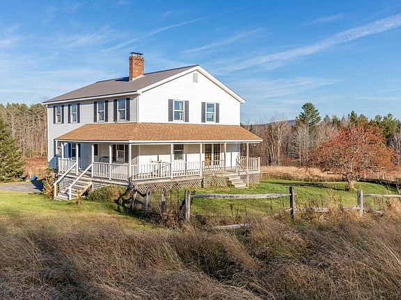 This home has everything you’ve been looking for. Located on sought-after Town Hill Rd. - this well maintained, lovely farmhouse features a wrap-around covered porch with gentle mountain views to enjoy sunrises, sunsets or snowstorms. 2400 sq. ft of living space featuring a welcoming country kitchen-dining room with wood stove to gather around after a long day of exploring the outdoors. The main level offers a private primary suite, gracious living room with built-in bookshelves and a half bath. Three bedrooms and a full bath on the upper level provide plenty of room for company. Exterior features include 10 mostly level, open acres suitable for gardening or even raising a few animals. The 3 stall barn has a large insulted workshop space, a hay loft and loads of charm. Attached 2 car garage & new heating system