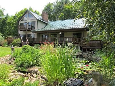 Sun lovers will adore this dramatic 4 bedroom, 2 1/2 bath contemporary. High ceilings, tile and wood floors create an open & airy feeling. A sumptuous master suite with floor to ceiling windows, sliders to open deck, private bath and very own den. Features: Open family room/dining/kitchen with fireplace, granite, new appliances, multi level decks, artfully landscaped with 3 ponds and fire pit. Bay front Lakeview. Open fishing season, snowmobile trails, hunting, boating and beaches. Being offered with HOWARD HANNA 100% MONEY BACK GUARANTEE and HSA Home Warranty.