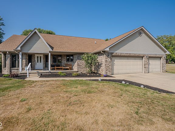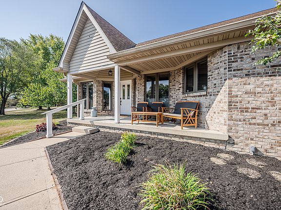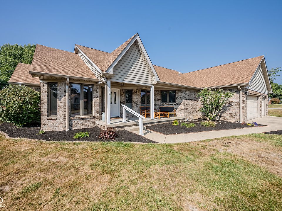 You'll find so much to love in this beautiful, custom built ranch home with 3 bedrooms, 2 full baths and 3 car garage. Sitting on a spacious corner lot, this home has an open floor plan with space for everyone. Covered front porch opens to generously sized foyer with adjacent dining room and kitchen, and leads to the large living room with cathedral ceiling, 2 sided fireplace, wet bar, and built-in bookcase. Family room shares the fireplace and features large windows looking out to the patio, deck, and back yard which is already fenced. The large eat-in kitchen has lots of counter space with a breakfast bar, coffee bar and plenty of room for a dining table leaving the formal dining room available to be used as a home office or other flex space if desired. The primary bedroom sits on one side of the home with an en suite bathroom and large walk-in closet, while the other two bedrooms are located on the opposite side of the home, sharing the second full bath. Laundry room is convenient to the kitchen and garage and has additional storage. Large three car garage with attic for additional storage possibilities. Outside you will find an enclosed glass patio/greenhouse (also wired for hot tub), deck for your grill, fire pit, and basketball goal. The low maintenance brick and vinyl exterior will leave you plenty of time to enjoy all that this home has to offer.