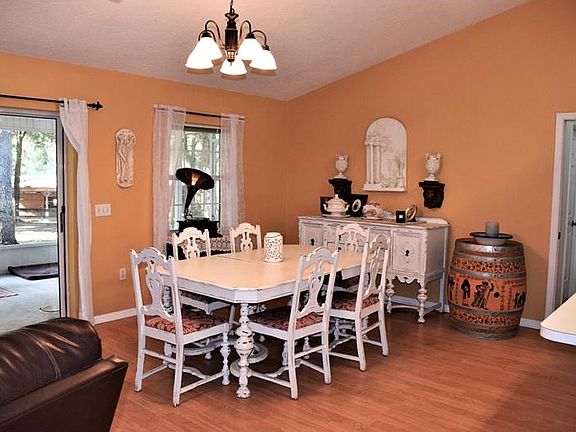 10 ACRE gated ranch bordering the Ocala National Forest and trails! Lovely 4 bedroom 2 bath, 2100+ square foot home boasts a 3-way split plan, wood laminate flooring throughout (no carpet in the home) volume ceilings, and open plan. The family room is flanked by a beautiful, wood burning fireplace where the main living areas/kitchen is the "heart of the home". The spacious master suite is on the opposite side of the home from the other three bedrooms, and features and en-suite bathroom with dual sinks and spacious walk-in shower. There is a nice-sized bonus room/flex space with many use-possibilities and two additional bedrooms and bathroom. Take in the scenic views from the over-sized back porch and fully fenced yard area. There is a 4-stall barn with tack and feed room, a carport which will accommodate multiple vehicles, and an additional store-room building with an array of possibilities. Bring the horses and other animals as the property is completely fenced and cross-fenced. This lovely wooded property offers nature's canopy of beautiful oaks and natural Florida vegetation. Great, move-in condition and well maintained, the home has just been re-roofed (August, 2017!) An exceptional 10-acre estate at an exceptional value in this secluded yet convenient Lake County location!