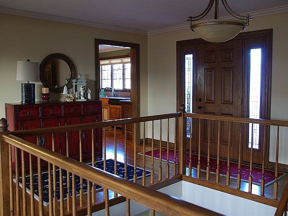 Great curb appeal. This is a lovely ranch style home with a main floor Master Bedroom and Laundry. Lots of windows to appreciate the wooded lot and creek. Open stairway in foyer leads to exposed lower living area which includes a huge family room with second gas log fireplace, 3 large bedrooms, bathroom, storage room.