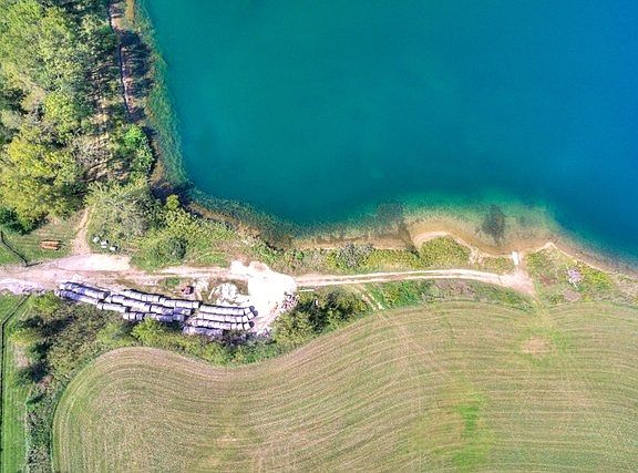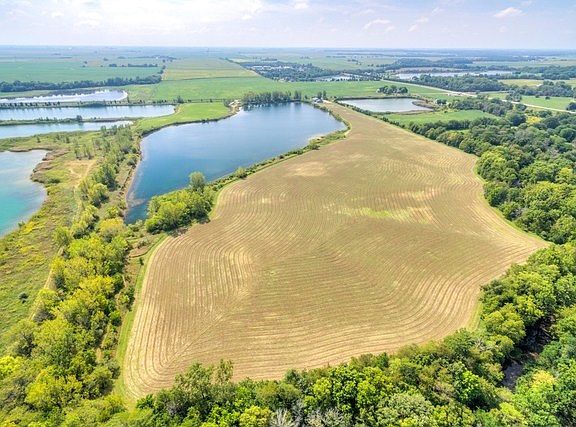 Incredible opportunity for a private estate or development! Stunning property with private lake! 75 plus acres zoned residential and commercial within Downs city limits. 25 acre well established stocked lake with private beach with expanded swimming area with sand bottom in 2010. Shared ownership of 2nd 23 acre lake with 725 ft of frontage. Beautifully styled 1900 square foot office which is currently leased and over 3800 square foot garage/shed with 3 large bay doors both built in 2008. Building on property includes private sand filter septic, private well and security fence with remote entry. Professional paver patio installed in 2010. Over 25 acres zoned residential which is perfect for building on. Over 1300 feet frontage along Highway 36 zoned commercial within 1 mile of I-74 exit 142. Currently farmed with 27 acres of hay with a share crop return of over $7,000 per year.
