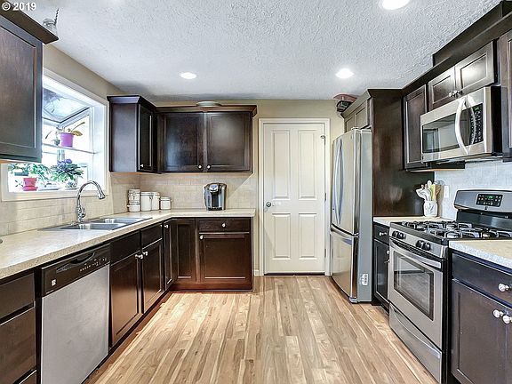 Complete remodel in quiet neighborhood. Updated large kitchen with gas stainless appliances and plenty of storage. Cozy living space with custom blinds and wood stove. Large Bedroom/bonus on the main. Newer Paint, New Bathrooms with Tile finishes. Huge fenced backyard with covered patio, garden beds and hot tub. Newer roof & windows.