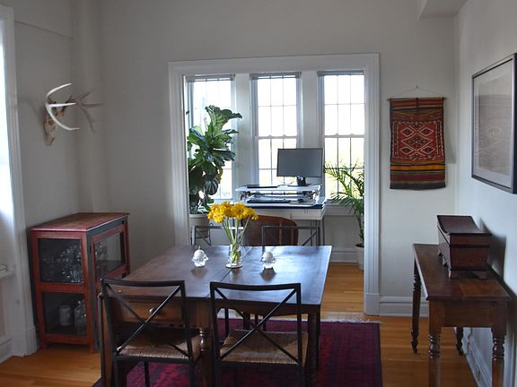 Gorgeous, truly light-filled 16th & U St. one-bedroom with 12 windows and unobstructed views up Meridian Hill and towards 14th St. NW. 750 square foot, with separate entryway, kitchen, dining room, corner office/den, living room, bedroom, and large bathroom. Built-in bookshelves, wood floors, and classic molding throughout. Washer and dryer in-unit (with additional in the basement), and stainless steel appliances less than 5 years old. The unit will be unfurnished. The condo takes up the entire back of the building on the 6th floor, and does not share any walls with any other units. Elevator, main wide stairwell, and back stairwell give access to the floor. Heat is steam radiators controlled by the building, and cooled with window AC units. Tenant is responsible for electric and gas, but heat, trash/recycling, and water are included and the building is wired with high-speed Verizon Fios internet. Street parking nearby with ward area permit. Unit located in a 1920 eight-story condo building, with two units per floor, and a courtyard out front, at the hub of Adams Morgan, Dupont, 14th St. and U St. corridors. Two blocks from Meridian Hill park, and less than 5 min walk to Trader Joes and Safeway. Walking distance to red, green, and yellow metro lines, as well as numerous bus lines right outside and the 15th St. protected bike lane. Please reach out with any questions. Single tours or open house TBD interest. Move-in January 1st, with a one year lease (changes to month to month after 1 year). Additional fees include: Building-required $350 move-in fee and security deposit (1 month rent). Small dogs allowed with permission from the HOA and a one-time pet fee ($400). Tenants required to provide proof of renters insurance. No cats and no smoking of any kind, and tenants are required to abide by HOA bylaws.