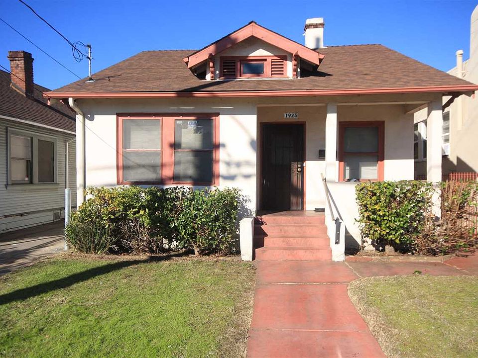 California bungalow has much to offer to the buyer who wants to own a home and put in some sweat equity. House shows 1 bedroom on tax records but has been used for years as a 2 bedroom home. Features include original hardwood floors (some covered by linoleum), coffered ceiling, board and batten wainscoting in living room, a china cabinet with leaded glass, a spacious backyard and a newer garage (built in 2000).