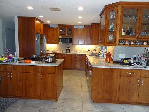 Location, Location, Location! So much to enjoy with this home. Beautifully remodeled kitchen with an abundance of cherry wood cabinets and lots of granite counters. All stainless steel appliances stay. Big dining area and attached family room with fireplace. Large master bedroom has sliding door to huge deck. Master bath has a jetted tub and separate shower and heated floor. One of the bedrooms has been converted to an office with custom made desk, bookshelves and built in gun cabinet. The lower level has a big family/craft room with gas stove and sink. The deck that is also accessed from the dining area has a built in exterior kitchen, hot and cold water, gas BBQ and a big gazebo/bar with additional sink. New roof, gutters with leaf guards in 2019. Furnace and air replaced 2-3 years ago.