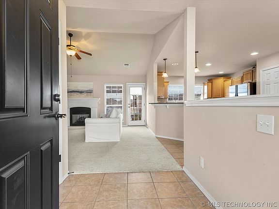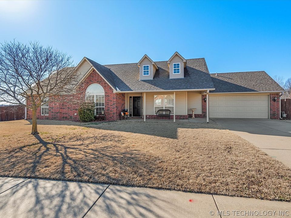 The Charming covered front porch welcomes you to this delightful home in Southern Hills. One of the larger lots in the neighborhood, this wonderful corner lot is almost half an acre! 3 bedrooms, 2 full baths. Primary bedroom has private ensuite bath with 2 walk-in closets. Primary bath has soaking tub and separate shower, also water closet. Front bedroom feels spacious with a vaulted ceiling. All bedrooms have walk-in closets. Living room has vaulted ceiling, and gas log fireplace - all open to the kitchen and large dining space. Enjoy the expansive sunset views from the pergola on extended patio.
