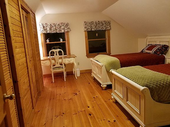 Beautiful pine floors , plenty of closets, nicely furnished, full concrete basement with root cellar. Utilities are very affordable Your choice of wood or oil heat. Great space on the second floor of the garage Can be made into storage or rec room for you Property tax does not reflect the house and 5.1 acres propert tax much is much less than listed it is seperate from the 200 acres
