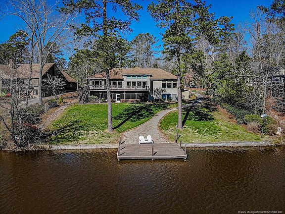 ABSOLUTELY STUNNING CUSTOM BUILT LAKEFRONT HOME WITH OVER 4000 SQUARE FEET! AS SOON AS YOU WALK IN YOU HAVE AMAZING 180 DEGREE WATER VIEWS FROM MOST EVERY ROOM. THIS TRULY BEAUTIFULLY UPGRADED HOME HAS EVERYTHING FOR THE DISCRIMINATING BUYER INCLUDING 4 BR'S AND 4.5 BATHS WITH OPEN FLOOR PLAN. EACH BR HAS IT'S OWN BATH AND MASTER BEDROOM HAS NEW TILE SHOWER AND SPECIAL TUB FOR RELAXING. DID I MENTION DOUBLE OVENS, LARGE PANTRY, EXTRA STUDY OR LIBRARY, 2 CAR GARAGE AND 3RD BAY FOR GOLF CART STORAGE AND DOWNSTAIRS SCREENED PORCH. WONDERFUL HOME FOR ENTERTAINING OR WATCH THE LAKE VIEWS YEAR ROUND FROM INSIDE OR ON YOUR HUGE DECK!. CAROLINA TRACE HAS 2 - 18 HOLE ROBERT TRENT JONES SR DESIGNED COURSES, DINING, EXERCISE, AND POOL & TENNIS. SOOO MANY EXTRAS THAT THIS HOME HAS TO BE SEEN. GET YOUR BOAT, GRAB YOUR FISHING POLE - SETTLE IN - AND ENJOY THIS BEAUTIFUL HOME WITH A SPECIAL PREMIER LOCATION ON THE WATER. BE READY TO MOVE IN AS THIS HOME WILL NOT DISAPPOINT!!