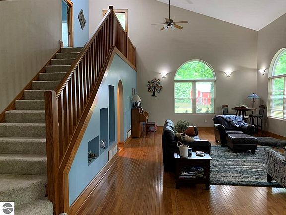 Original construction in 1996, substantial addition about 2004. Great home if you are looking for a hobby farm or just need more space and storage. 2,939 square feet, with 4 bedrooms and 3 baths. Custom spacious master bath was just added with heated floors and dual shower heads. Beautiful hardwood floors, french doors, trim and 6 panel doors of solid oak (and some ash). Vaulted ceilings add to the feeling of spaciousness throughout the home. Enjoy a fire in the newly installed living room fireplace. Home includes covered decks in front and out back, fire pit area. 30 X 40 pole building with potential for additional living quarters, the living space needs to be updated as it has not been used for several years. An additional pole barn that can be used for farm animals, includes two stalls, electric and water nearby. Near thousands of acres of federal land and yet less than 10 minutes from Cadillac's busy north end.