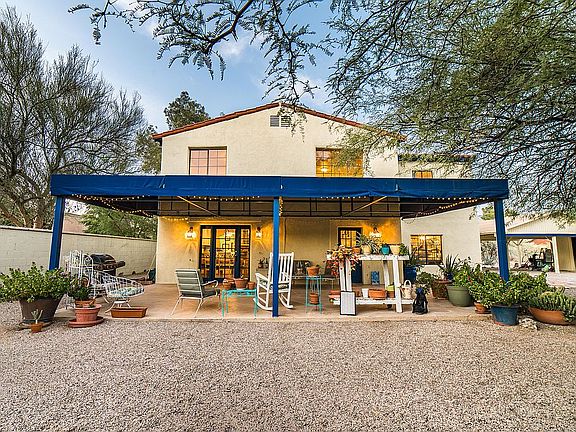 Visit this home virtually with attached video walkthrough. Unique opportunity for 2,296 SqFt split floor plan 3 bedroom and 2 full bath plus office, all electric masonry stucco Santa Barbara style home on massive .46-acre lot tucked away in desirable Richland Heights in thriving Central Tucson. Originally built in 1947, remodeled in 1973 and tastefully updated in 2011 retaining its vintage character and charm with updated modern amenities. Featuring: No HOA, RV parking, RX2 zoning, N/S orientation, omnipresent Catalina mountain views from covered balcony and backyard, low maintenance clay tile roof, updated 200 AMP electrical panel, multiple covered patios on scored concrete w/two new awnings, $40K extensive painted block privacy wall with custom rusted metal gate, burnt adobe pavers, CONT extended double carport plus storage shed w/power. Inside buyers will appreciate vintage wood floors, updated double pane windows w/wood sash & trim, custom window blinds, white internal doors, cozy updated kitchen w/full slab granite countertops, bar seating, double overmount white sinks, hickory wood ceiling, recessed lighting, open dining area, stainless steel appliance package, built-in microwave, updated farm style kitchen cabinets, butler's pantry internal laundry room (washer & dryer included), downstairs bedroom & full guest bathroom w/tiled walk in shower, ample storage under stairs closet, 2016 Rheem HVAC w/digital thermostat. Wood stairs w/Spanish tile inserts & wood banister lead to second floor family room w/fantastic natural light, plank wood ceilings, guest bedroom #2, master bedroom suite with spacious walk in closet, full bathroom, door out to covered balcony to enjoy elevated Tucson sunsets and Catalina mountain views year-round. Convenient Central Tucson location minutes to the U of A, 4 blocks to Banner Medical Center, walk to groceries, shopping, restaurants and 5 minutes from the paved Rillito Bike path. Great walkability and a 90 biker's score!
