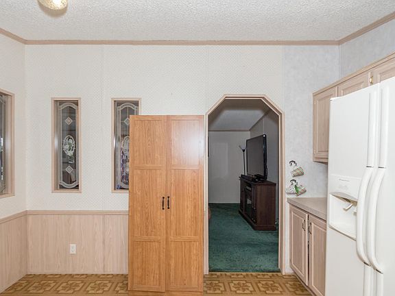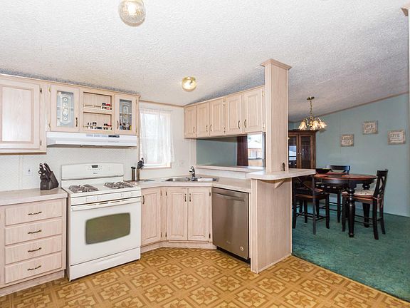 Well maintained, beautiful double wide Cavco with split floor plan, vaulted ceilings and large kitchen. Low maintenance landscaping in front with mature trees, brand new wooden privacy fence and dog run in back. Wonderful garden tub in master bath and large master bedroom create a sense of serenity.
