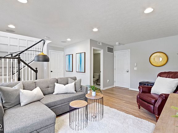 Discover this beautifully updated end-unit townhome in Arden, conveniently located near the Carmel Arts & Design District. This three-level home features a flexible lower level perfect for a media room or home office, complete with a half bath. The main floor offers an open layout with a kitchen featuring quartz countertops and a bright space for dining or work. Upstairs, find three bedrooms, including a spacious primary suite with a custom closet and upgraded bath. Enjoy abundant natural light, a private balcony, and a 2-car garage with an EV charger. Move-in ready and ideally situated!
