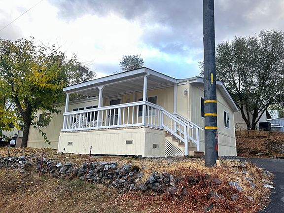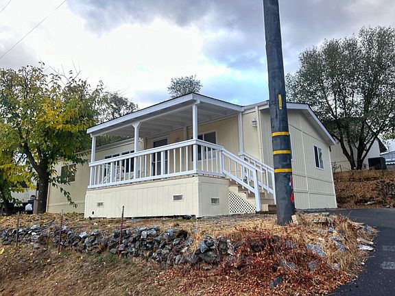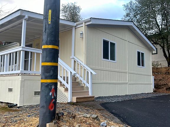 Cute Mobile Home atop the hill with scenic views of surrounding foothills! Home is 3 bedrooms/2 bathrooms and has been completely updated inside and out! Highlights in kitchen include stainless steel appliances, new countertops, backsplash and hardware. Primary bedroom has a spacious walk-in closet, and full bathroom with vanity. Additional updates include fresh paint and flooring, light fixtures, air conditioner unit, and a new roof- just to name a few! Home sits within a nice location in park and has a spacious front deck to enjoy the views across the way. Sale includes refrigerator, washer and dryer. Gold Strike Village is located on the site of the Hageman Gold Mine in the historic rural community of San Andreas, CA. Includes swimming pool and laundry facility. Park approval is required. Space #53