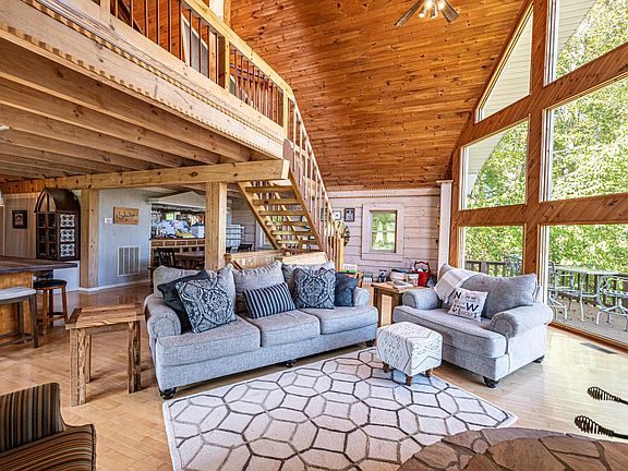 Fully furnished LAKEFRONT home. Available for 1 month to 3 months. Every day will feel like a vacation in this 2-story A-Frame with stunning views of Lake Hickory Featuring a large main level with soaring ceilings and panoramic views of the lake from the floor to ceiling windows, gorgeous open floorplan with Great Room open to the Dining Area w/beamed ceiling & Kitchen with island & fully stocked cabinets. 2nd bedroom and full bathroom with laundry on the main level as well. The Primary Suite expands throughout the entire upstairs loft with views of the lake. Basement w/plenty of space for 2nd Living Area with Kitchenette, rooms for guests/office space, a full bathroom and patio. Walkout Basement provides views of lake. Loads of space & amazing views throughout. This is a wonderful temporary spot! 1 to 3 month terms. Utilities are included. Absolutely no smoking allowed. No pets.