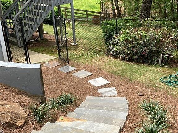First time on market, beautiful Habersham Pointe home in Forsyth County. Close to Hwy 400, highly-rated and desirable Forsyth County Schools, and every shopping experience imaginable. Habersham Pointe Marina within short walk - dry dock storage, docks, marine store and shop. This 4br, 3 full bath home has amazing curb appeal. Extensive landscaping, privacy, back deck and patio, and large front patio surrounding unique plantings and fountain - perfect entertaining spot. Interior features two levels: Main includes large master suite, master bath and walk-in closets. Two nice size secondary bedrooms, huge great room with impressive soaring cathedral ceiling, cozy fireplace, built-ins. Dining room has high trey ceiling, plenty of light. Open concept. Kitchen has updated cabinets, granite counters and separate sun-filled breakfast area, back deck with stairs to lower level, wooded view. Lower Level features a second master bedroom (or use with multiple beds), full bath, professional built ins with area for TV, door to back patio for grilling and entertaining, play area. Has its own kitchenette. Perfect in-law suite. Space for home office, exercise room, hobbies, play area. As soon as you enter the lower level you will be impressed. 2 car garage has entry ramp (can be removed to accommodate 2 full cars), expanded parking pad, and level driveway - no up hill or down hill to navigate. This home has it all. Why not make it yours today!
