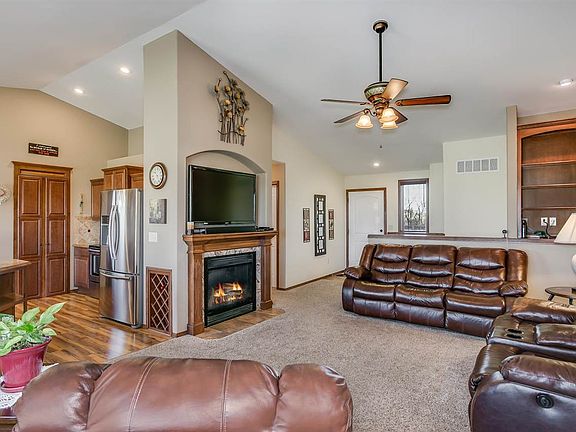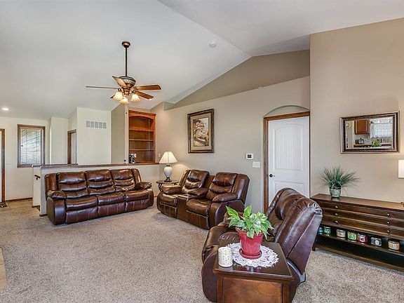 Immaculate Home located in Derby's premier Golf Course Community! The views of the golf course will captivate you as you enjoy coffee on the covered patio. The sunset and sunrise will be a daily inspiration! You will love the open floor plan of this 4 bedroom, 3 bath home. the kitchen has hardwood floors, a huge island, custom built in wine rack, walk in pantry and plenty of storage. The master suite has plenty of space and bright natural light, a custom tile shower with multi spray and rain shower, built in vanity, enormous walk in closet that leads to the main floor laundry. The main floor laundry room has a drop zone bench with cubbies and plenty of cabinet and storage space. The fully finished basement has a large family/rec room, wet bar, 2 more bedrooms and a full bathroom. This like new home will not last long at this price! Call for a private showing TODAY!