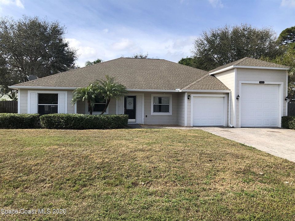 This beautiful 4 bedroom, 2 bath home sits on a 1/4 of an acre. The 2 car garage features one tall side for you boat or RV. The open floorplan has the kitchen open to the main living area with a traditional living and dining room area, as well. There is a large area off the beautiful kitchen (with granite counter tops)-lots of room for an eating area and it has a single french door to the back yard. The bedrooms are split plan and the hall bath has a door that opens to the back yard (plenty of room for that pool!). The upgrades include crown molding throughout and 5'' baseboards. All the living areas are tiled in a large neutral tile, while the bedrooms are carpeted (one has laminate).All this and you are about a block from the beautiful Banana River.