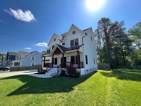 Gorgeous newer construction modern farmhouse in Summer Park. Custom-built 3303 SQ FT home on 2 levels of living w/ 5 BR & 4.5 BA on 1/3 acre. Bright Main level w/ 9' ceilings featuring Mudroom, Office, Powder Room & formal DR w/ pass through to Kitchen (w/ white shaker cabinetry, SS appliances, wine fridge & built-in MWV), breakfast area, quartz counters & large island opening on to inviting FR w/ FP & sliding glass doors that lead to covered Porch & huge yard. Level 2 has elegant Master BR Suite w/ large WLKIN & a lux BA w/ soaking tub & oversized shower. Also, 2 BR linked by shared BA, extra BR w/ ensuite BA & Laundry. Level 3 has over-sized bonus room that can be 5th BR, media room, or playroom w/ adjacent full BA. Home also has large 2-car GAR, 2-zone HVAC, Pella windows, custom railings, beautiful tile & wood floors. Plus, it's in Chesapeake's Grassfield school district. Don't miss your chance to call this beautiful retreat home!