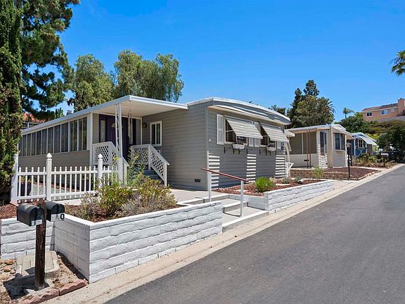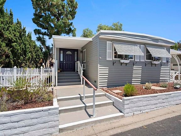 55/45+ COMMUNITY<<<MOVE-IN READY>>> Welcome to one of the most desirable Mobile Home Parks in all of Chula Vista. Located right in the heart of Eastlake, tucked away in a premium hidden location, this 55+ Senior Park is exceptionally maintained, neighbor-friendly and only a few minutes to all shopping and dining. Enjoy Costco, Target, Trader Joes, Sprouts, Cheesecake Factory, iHOP and so much more, all within just a few miles! Secluded from all the "hustle and bustle", you'll enjoy tranquility while sipping your morning coffee in your oversized sunroom OR your private backyard. The chirping birds, the lack of noise and the cleanliness of this park are only a few benefits you will enjoy while living in the community. This beautifully maintained home offers 2 bedrooms & 2 full bathrooms with newer windows and custom shutters throughout. Laundry area just off the kitchen with full-size washer and dryer, too. The flooring is vinyl planks throughout the home except the sunroom which has indoor/outdoor carpet. You'll also enjoy your own private carport large enough to park 3 cars AND extra privacy towards the backyard with no neighbors behind. This home sits at the very top of the park and enjoys the best breezes possible due to its elevation. Enjoy the concreted backyard space, white picket fence that surrounds the yard and extra yard space behind the fence. This location in the park is PRIME! Storage shed is located outback for tools, bicycles, hobbies, gardening supplies or extra household items. Very low maintenance outdoor space and a porch that faces west which provides a great breeze on a hot day. Don't miss your opportunity to purchase a MOVE-IN ready home in this desirable park
