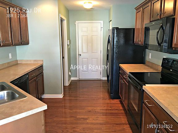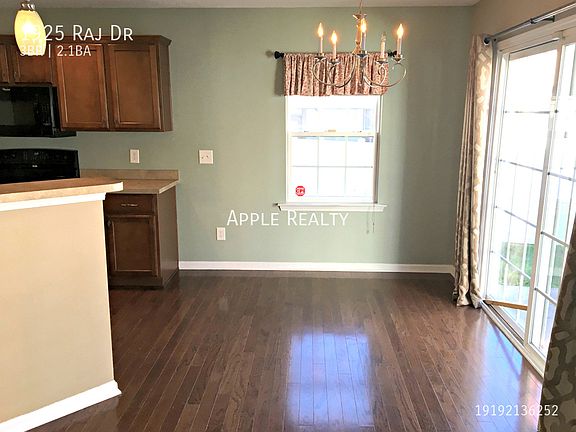 3 Bedroom 2 1/2 baths, This 1640 sq ft house in the community of Meadows of Pagehurst is centrally located near RTP, Brier Creek, I-40 & I-540. Tenants have access to two playgrounds and a pool. Stove, dishwasher, refrigerator, microwave and washer and dryer are included. Two car garage. Enclosed backyard with patio. Mostly carpeted with hardwoods in the kitchen and dining area, fireplace with gas logs. Large master bedroom / bath suite. Dual vanities in both baths. Laundry is upstairs. Gas heat and central air conditioning, gas water heater. Alarm system not monitored. ONE small dog only, no cats.