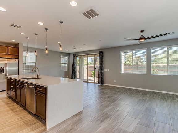 This home is in Shea Homes' newest community, Compass at Recker Point. It offers a spacious layout with 3 bedrooms, a large loft area, and 2.5 bathrooms. The open-concept great room seamlessly connects to an upgraded kitchen, featuring high-end stainless-steel appliances, a 5-burner gas cooktop, upgraded cabinetry, Quartz countertops, and designer flooring throughout. Additional enhancements include a water softener system, a landscaped backyard, and a full-size washer and dryer. The community is conveniently located just half a mile from the San Tan/Loop 202 Freeway, providing easy access to shopping, dining, and entertainment. This home is also close to community amenities, including a pool, covered play structure, picnic areas, BBQs, and more. To request a video link of the home or schedule a personal showing, please email or text. 1 year lease.