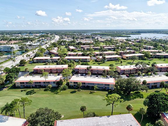 In the HEART OF STUART, 55+ development, near shopping and close to Downtown Stuart. This unit has beautiful crown molding throughout, laminate flooring in the living space, tile in the kitchen, perfect to sit on your back screened in porch overlooking the gorgeous golf course. Two extra large storage units on your back porch to store your beach chairs.