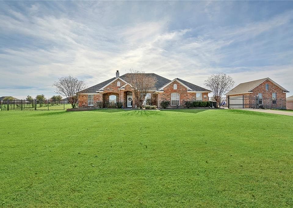 A short drive to City conveniences from this exquisite home in the country. Home is situated on over 1 acre with NO HOA. Home has a fabulous layout, spacious living room which has a beautiful bricked, wood burning fireplace. Opulent master suite includes dual vanities, jetted tub, separate shower. Back yard is surrounded by wrought iron fencing complete with automatic gate and remote access. Home has brand new carpets and blinds the Lennox HVAC was installed in 2016. Additional 24 by 24 detached garage or workshop with 8 by 20 loft storage space. The home is in rapidly growing, much sought after Northwest ISD. Coming soon, new interior door handles, ceiling fans and new stainless kitchen appliances.