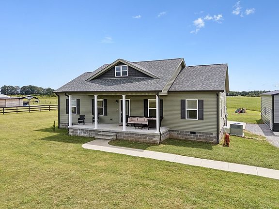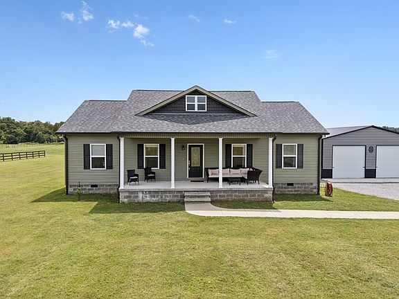 Immaculate ranch-style home on 5.09 level acres. Minutes from Center Hill Lake. This beautiful open- concept home features hardwood flooring throughout, recessed lighting, vaulted ceilings and cozy gas fireplace in the living room. Kitchen boast SS appliances, granite counters, large kitchen island/breakfast bar and ample storage. Split bedroom floor plan layout offers privacy with a spacious primary suite, including walk-in closet with built-ins for extra storage, granite counters, double vanities and tile flooring. Outside is a covered front porch, attached 2 car carport and detached 30' x 40' detached garage with 12' walls, 2 jumbo doors (10' x 10'), steel pedestrian door, and up-graded concrete pad w/4,000 PSI fiber, more suitable for heavy equipment and vehicle lifts. Also included is a 24 ft, thoughtfully constructed chicken coop with 8' x 16' fenced run w/pedestrian door, suitable for 24 chickens. Fresh fruit and vegetables? 30' x 30' fenced garden with gate and compost bin.