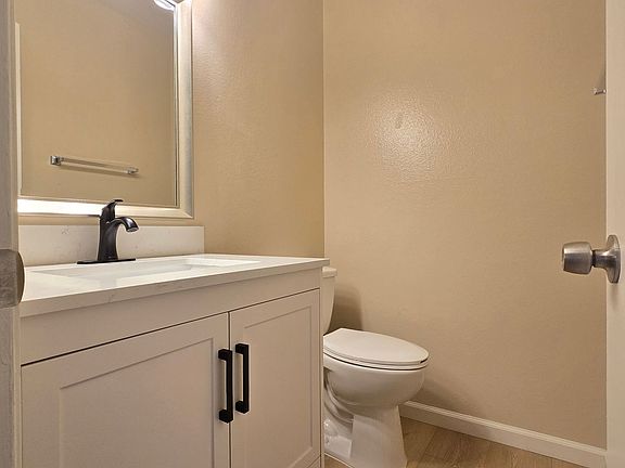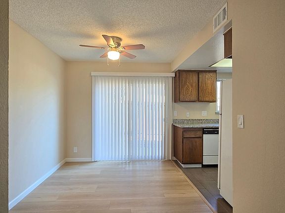 Spacious 2-story renovated apartment with 2 spacious bedrooms, 1.5 bathroom, and a 1 car garage with automatic garage door opener. The apartment has been remodeled with granite counters, wood plank flooring, fresh paint, new bathrooms, new window coverings, and dual pane windows. The apartment features a large pantry in the kitchen, a wall air conditioner in the living room, and a large backyard are off the dining area with a concrete patio. Washer and dryer hookups provided in the garage.