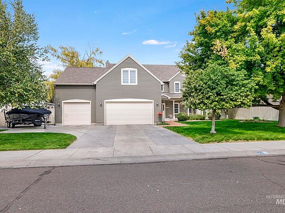 Beautifully crafted two-story home offers an impressive 0.3 acre lot on a quiet loop in the heart of Twin Falls. A charming covered front porch welcomes you into a bright interior featuring soaring ceilings and a classic staircase. With 4 bedrooms, 2.5 baths, Office, upstairs theater/bonus room, and a playroom (or 5th bedroom), there’s space for everyone. The spacious kitchen provides abundant storage and workspace on the large granite island, which is ideal for gathering, as it overlooks the dining area and great room that is anchored by a gas fireplace and ample windows. The primary suite includes a dual granite vanity, soaker tub, built-in cabinet, and walk-in closet. Enjoy the fully fenced backyard and beautiful mature trees with a paved patio—perfect for gatherings or private relaxing evenings. Includes a 3-car garage and RV parking, currently accommodating a boat and 23’ RV. — Don’t miss the 3D Virtual Tour!
