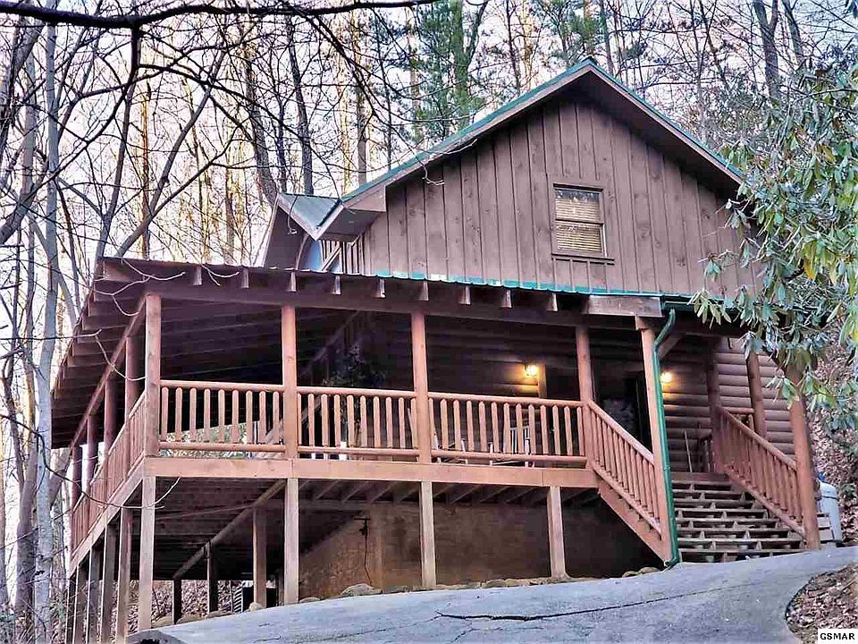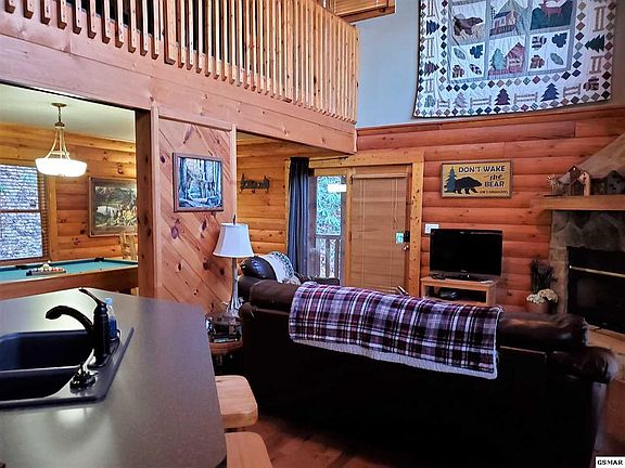 True log cabin in a much sought after area of Gatlinburg! You will love the wonderful and spacious great room complete with high ceilings, spacious living room with gas log fireplace, kitchen, game area with pool table and rustic log dining set. Upstairs is a very roomy loft/master suite with king bed, full bath and a cedar sauna! Step outside to the wrap around deck covered with an exposed beam ceiling, accented with log railings and hot tub with plenty of room to enjoy relaxing in rocking chairs or outside dining. All furnishings remain with this cabin--there's nothing left to do to continue renting to vacation guests! (Owner currently rents it themselves.) Lots of attention to detail in this cabin--a great getaway only five minutes to downtown Gatlinburg, the Ski Resort or the Great Smoky Mountains National Park--plus--lots of shopping and great restaurants nearby to enjoy!