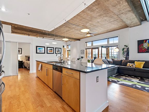 A professionally crafted floor to ceiling mural is offers vibrant and welcoming entrance for family and friends. With an open floor plan, 10 Ft concrete slab ceilings, separate master suite plus a stylish murphy bed with custom storage, this chic 1 bed, 2 bath condo is your urban Denver dream come true! The home feel and live large, almost like a 2-2. It can comfortably hold 2 beds. The unit is ADA accessible and has been redesigned to afford refined access. Modern updates include Nest smart thermostat, tankless water heater and High Efficiency Washer and Dryer. The kitchen is perfect for entertaining with granite surfaces, a large slab granite island, stainless steel appliances, and Dacor gas range. Premium finishes throughout include hardwood floors, master w/ a walk-in closet complete w/ custom built-ins. Both bathrooms are appointed with travertine tile. Enjoy people watching while you grill on your balcony overlooking 32nd Ave. or head up to the roof for Amazing 360 views of the city! No need to worry about parking as the unit comes with a Deeded space. Walk to your favorite boutique shops, meet friends for yoga, or dining at Linger, Little Man Ice Cream, Old Major, El Five, and Avanti. A quick walk across one of two pedestrian bridges brings you Downtown and RTD Lightrail hub at Union Station. Plenty of green spaces to play with Highlands Park, Commons Park, and the Cherry Creek Bike Path just a few blocks away!