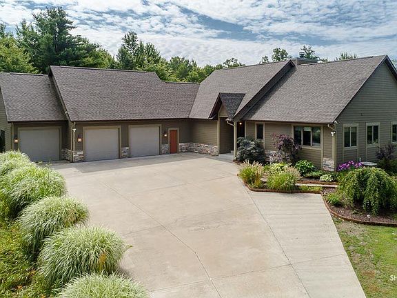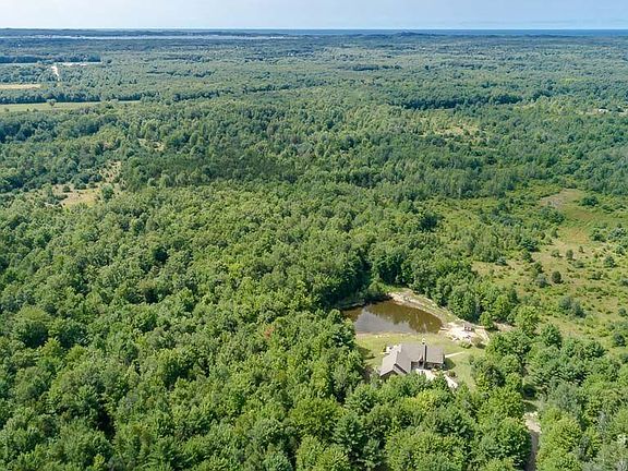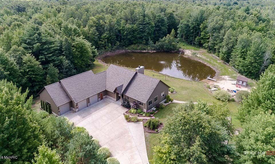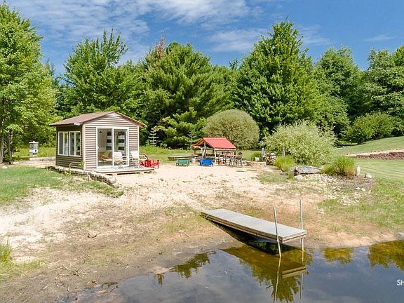 This open concept Ranch style home sits on 46 acres of private and secluded property, yet close to town. View out from your 4 season room or from the wrap around deck to the 20 ft deep pond (stocked with hundreds of bass and bluegill) with your own sandy beach and beach house! Over 2000 square feet on the main floor with a total of 4 bedrooms and 4 bathrooms. Wood burning fireplace and cherry wood accents the vaulted ceilings. This Gourmet kitchen has granite countertops is open to dining andliving room - excellent for large gatherings. All appliances stay and a Home warranty is included. The walk out lower level with its custom designed Captain's beds in the huge family room. There is a 4th bedroom with a full bathroom, a workout room and a huge storage room. This home has 3 on suites - bedrooms with connecting full bathrooms! Need more storage? 24 x 24 pole barn in addition to the 3 stall finished and attached garage with office. Land once had blueberries and now has deer!