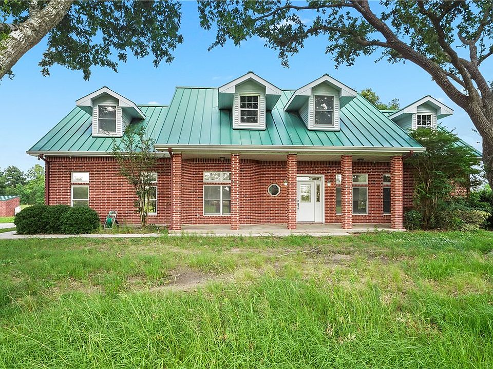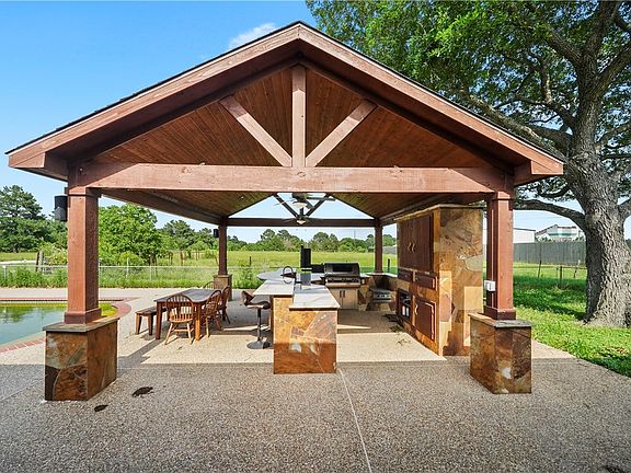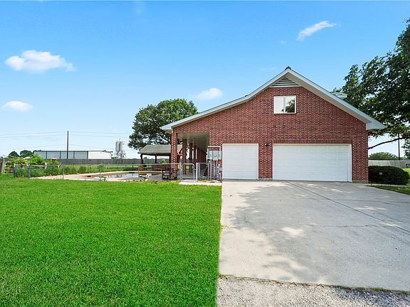 Enjoy the best of country living just west of Houston! Nestled on approximately 1.5 acres, this well-built home features a full brick exterior, standing seam metal roof, and durable steel beam construction. Inside, a spacious open layout connects the living, dining, and kitchen areas, all finished with warm slate flooring and custom woodwork. The downstairs primary suite includes an oversized walk-in shower, double vanities, and a large closet. Upstairs offers two bedrooms, a full bath, a bonus flex space, game room, and a fully equipped media room. Step outside to your private pool, outdoor kitchen with bar seating, and wide-open pasture views. A 3-car garage, whole-home generator, and propane system add convenience. Optional 3-acre tract available for lease at additional cost. Just minutes to Hwy 290 schedule your tour today!