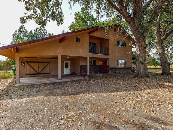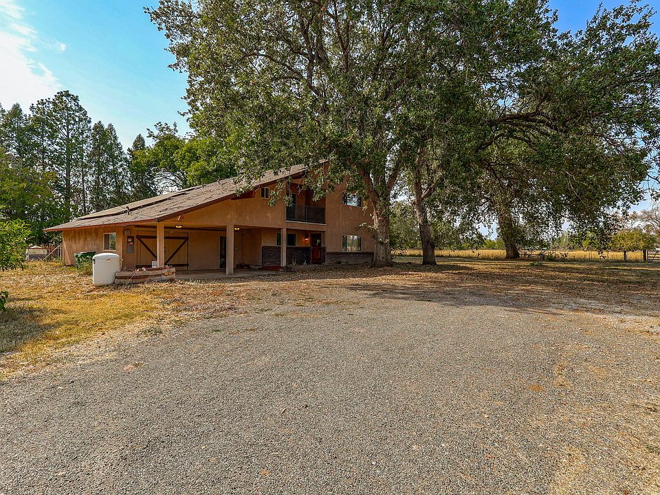 Self-Sustainability in this close in 4.59 acre farmhouse with Owned Solar, 2-Battery back ups & generator. Private well for excellent water, Fruit Trees: lemon, pomegranate, persimmon, plum, & blueberry bushes. This 4 bedroom 3 bath home offers a lot of flexibility with OPEN floor plan, Exposed wood beams, cozy fireplace, Large Bonus/family room, 2 master suites, 2 private balconies with views of the property. Full Laundry/mud room, Huge shop area for toys, storage and more. Full RV hook-ups, NEW ROOF, Massive Mature Oak trees provide great natural canopy for shade. Fenced and Cross fenced. Ready for livestock. FULLY-IRRIGATED GARDEN, ACID for affordable irrigation. All of this close to amenities and shopping. A MUST SEE if you want country with easily accessible conveniences.