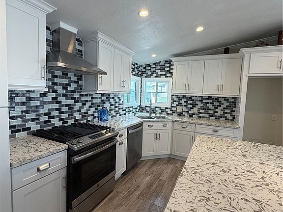 Beautiful Skyline Doublewide Newly Remodeled Home in the Del Mar Estates Senior Park, 55/40+. Come see this 3 bedroom / 2 Bath ready to move in 1344sq ft cozy home. New dual pane windows with white shutters coverings. Open floor plan to enjoy your family and friends sitting around the spacious island and remodeled kitchen, Quartz counter tops. A Must See! All rooms are spacious and with 2 remodeled Bathrooms, come take a look for yourself. Split A/C in 3 rooms, All new flooring. Laundry room with lots of storage. Private Brick porch with new railings. Carport parks 2 cars and more guest parking. Park has Gym, Spa, Tennis courts, heated pools and a Billard's room. Park approval is quick.