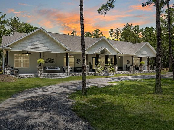 Make sure to check out the Virtual Tour for a 3D Model w/ Walkthrough, Floor Plan w/ Measurements, Video, & more! 5 Bedrooms, 4.5 Bathrooms, 3653 SF Living (5,407 under roof), the most amazing front porch, custom pool and spa with fire and water features, 8.8 Agricultural Acres w/ No Flood Insurance needed, Custom Built in 2019, Full In-Law Suite with 2 beds, 2 baths, and 2nd full kitchen! That's the bait - you on the hook yet? If so, read on! Welcome to a home that captures the essence of comfort, luxury, and a picturesque agricultural lifestyle. Step inside this 2019-built custom home, where 5 bedrooms and 4.5 bathrooms await, ensuring ample space for you and yours. The heart of the home lies in the beautifully designed great room, highlighted with eye-catching features, one after the other... from the huge marble topped island, to the shiplap accented TV wall w/ fire feature. The vaulted ceilings serve to enhance the huge sense of space and when combined with the abundance of windows create that larger than life, light/bright/airy feeling.And the master suite? It captures a feeling that must be experienced in person to appreciate... gorgeous soaking tub, walk-around dual-head shower, custom dual-sink vanity, fireplace, and again one eye-catching feature after another. This incredible property sits on a sprawling 8.8-acre parcel of land, zoned agricultural, and in a low-risk flood zone granting you the freedom to explore the joys of farming and animals without the burden of flood insurance. Picture yourself cultivating a sustainable garden or raising your favorite farm animals, as the expansive space and thoughtful fencing provide a safe haven for goats, chickens, pigs, and grazing animals (miniature fainting goats, perhaps? Trust me... google it, you'll thank me later). There's even a pet washing station in the laundry room! The full mother-in-law suite is a multi-generational families dream, offering 2 bedrooms, 2 bathrooms, and a second fully equipped kitchen and living area. Whether it's accommodating extended family members or providing a space for guests to retreat, this versatile suite wraps around the pool and ensures comfort and privacy for everyone. The outdoors beckon (yup, I said beckon) with a FANTASTIC pool package that promises endless relaxation. Immerse yourself in the refreshing waters, surrounded by travertine pavers that exude luxury. The enchanting water features and serene waterfalls create a soothing soundscape, while the cozy fire trough adds a touch of charm to your evening gatherings. Which one do you find yourself getting lost in - The waterfalls? or the flames? In between dips in the jacuzzi and pool, relax under the gazebo for some shade with friends. Don't miss your chance to make this extraordinary property your own. Immerse yourself in the duality of luxury living and the idyllic harmony of an agricultural haven. Your dream home awaits! Private tours available to qualified buyers only. Ask your agent for details!