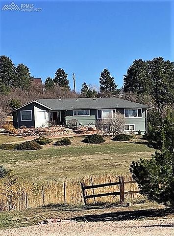 Wow! A peach of a property in a private setting w/ 2.19 Acres in Wakonda Hills. Natural beauty w/ meadows and trees & a perfect Pikes Peak view! Nicely laid out w/ a master bedroom/living area wing. Large kitchen not only has breathtaking views but also well equipped w/ large solid surface counter bars. Vaulted ceilings/great room w/ skylights/ gas fireplace w/ hearth. Walk out the main level to a private patio. Workshop and an oversize 2 car garage. Great SW exposure for gardening and solar power potential. RV'S are OK!