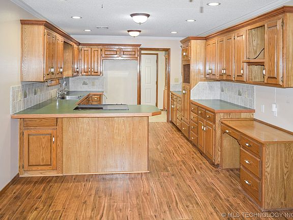 Beautiful home and property in a wonderful location just east of Antlers is a must see! Classic home offers a huge living area with an electric fireplace, and large windows and skylights that provide abundant natural lighting. There is a spacious dining area and kitchen with cabinets galore, including so many drawers, which make accessing kitchen items so much easier. The adjacent laundry room has full size washer and dryer connections plus shelving and storage space and it leads into the two-car garage, where there is even more storage area! The home's primary bedroom also features a nice skylight, walk-in closet with built-in's and a bathroom with a walk-in jetted tub. The two guest bedrooms across the hall also have nice closets, one actually having a built-in safe for securing small valuables out of sight. The guest bathroom has a lovely shower with a bench and mosaic tile border. It too has abundant storage space, just like the rest of the home! Outdoors.. where to begin? The approximate two and one half acre property is adorned with and surrounded by mature trees that provide welcomed shade, There is a pond on the property as well. One can enjoy the peaceful surroundings from the front porch or even the large deck made for entertaining out back. A chain link fence around a large portion of the backyard makes it a great place for pets or kids to play. There is so much this wonderful property has to offer the discerning buyer, but it must be seen in person to fully appreciate it, so call today to schedule an appointment to see for yourself what all of the fuss is about!