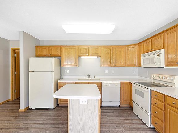 Beautiful sun lit townhome in a 55+ community, conveniently located in the heart of Elk River. With new flooring throughout, neutral walls and is exceptionally clean. This one is a stunner! Nothing to do here just move in. In the winters you can cozy up with the fireplace, and in the summers enjoy your large sunroom and/or outdoor private patio. The large expansive primary with a private on suite, walk in closet and plenty of storage is just one more reason to book a showing. Located near shops, restaurants